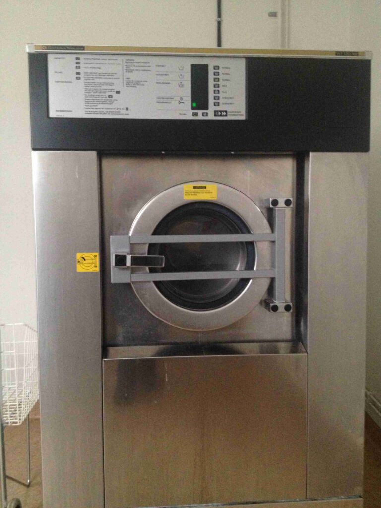 Grovtvättugan innehåller en kraftig tvättmaskin och ett torkskåp.
